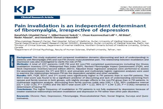 چاپ مقاله Pain Invalidation در فیبرومیالژی